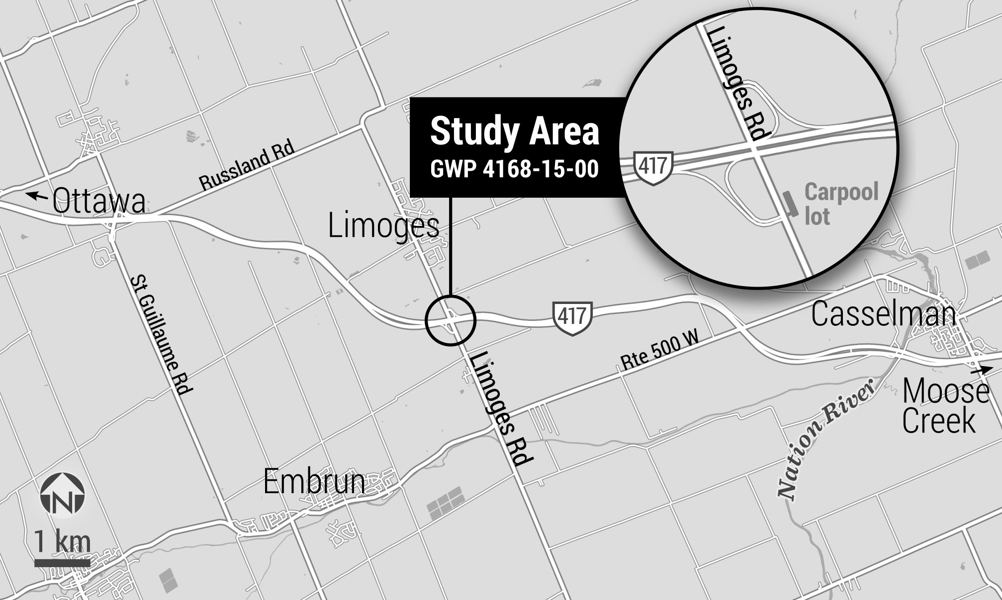 The Ministry of Transportation, Ontario (MTO) is undertaking a Preliminary Design and Class Environmental Assessment (Class EA) the expansion of an existing commuter parking lot at the Highway 417 and Limoges Road interchange in the Township of Russell and the Municipality of The Nation. Stantec Consulting Limited (Stantec) was retained by the MTO to complete the Preliminary Design and Class EA Study for this assignment.